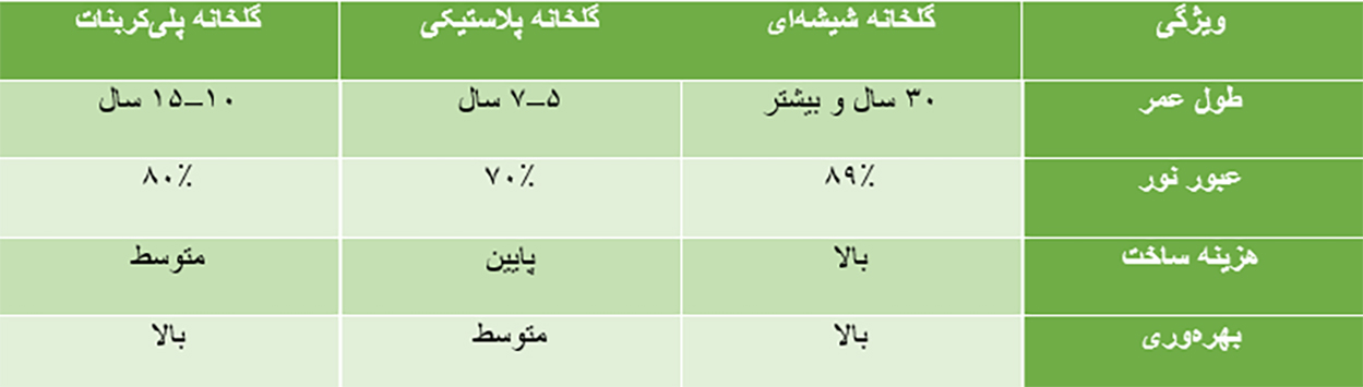 مقایسه گلخانه شیشهای با سایر گلخانهها